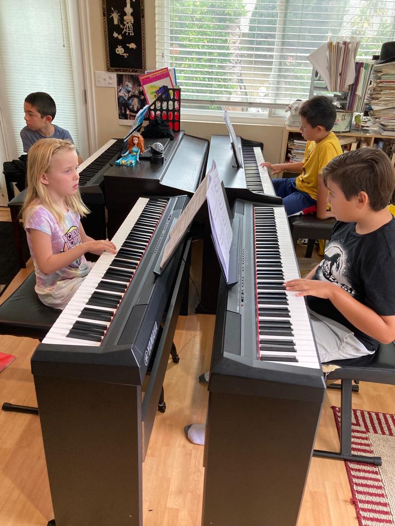 No gimmicks, we have a traditional European approach to lessons with sight reading, theory, technique, and performing skills